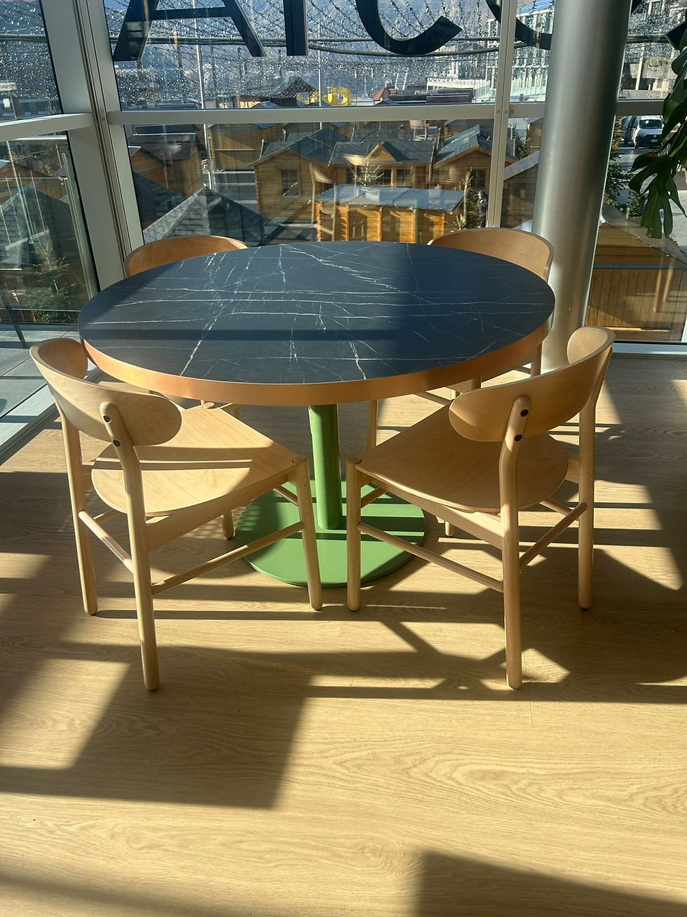 Les taules es presenten en formats rodons, quadrats i rectangulars, facilitant una gran flexibilitat d’organització de la sala.