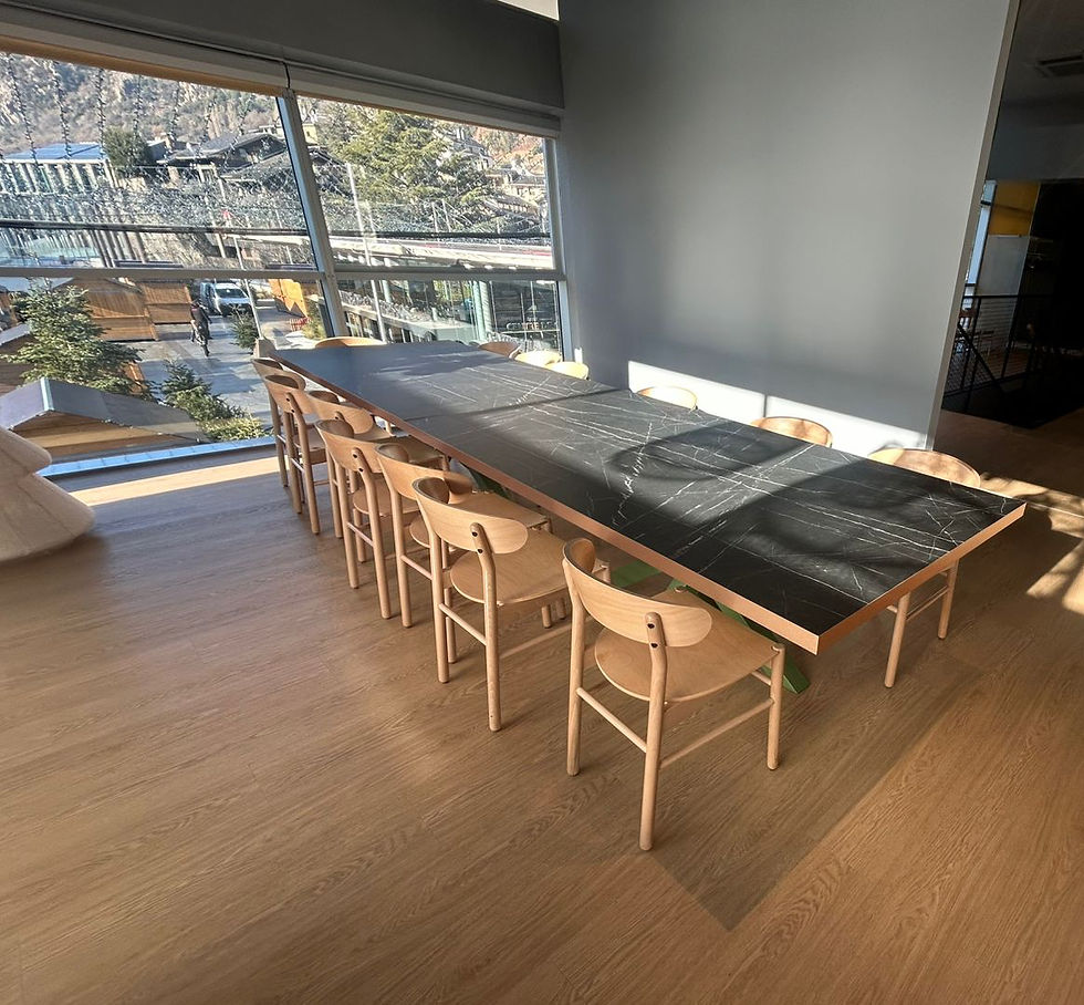 Un dels elements més distintius del projecte són les taules de disseny personalitzat, concebudes per reforçar el vincle amb l’entorn natural: